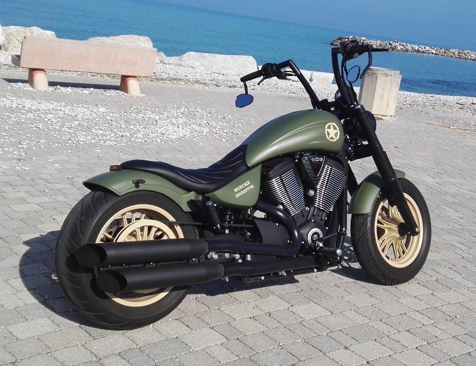 Hier sehen Sie eines unserer individuellen Custom-Bikes, das wir für einen Kunden gefertigt haben. Gerne können Sie sich dadurch inspirieren lassen und sich Ihr eigenes, ähnliches Custom-Bike von uns bauen lassen.